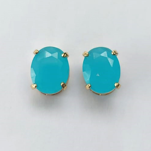 BRINCO FOLHEADO A OURO - BANHADO COM 5 MILÉSIMOS + VERNIZ DIAMOND - BRINCO DE PINO COM ZIRCÔNIA AZUL 8X10MM - OURO412