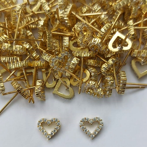 BRINCO NO BRUTO PRONTO PARA O BANHO - BRINCO DE PINO CORAÇÃO VAZADO CRAVEJADO EM MICROS ZIRCÔNIAS 7MM - PESO: 0,7GR - COMPOSIÇÃO: LATÃO / ZIRCÔNIA - BRU16055