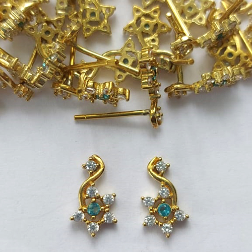 BRINCO NO BRUTO PRONTO PARA O BANHO (BX001309 C037) - BRINCO DE PINO FLOR COM ZIRCÔNIAS - TAMANHO 11MM - PESO TOTAL DO PAR 0,6GR - BRU15914