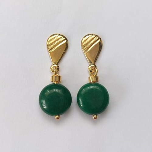BRINCO FOLHEADO A OURO - BANHADO COM 5 MILÉSIMOS + VERNIZ DIAMOND - BRINCO DE PINO BASE GOTA COM PINGENTE EM PEDRA ÁGATA 12MM - OURO576
