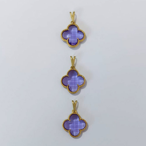 PINGENTE NO BRUTO PRONTO PARA O BANHO - KIT COM 3 PINGENTES TIPO VAN CLEEF VIDRO LILÁS 15MM - PESO TOTAL 4,6GR - BRU24320