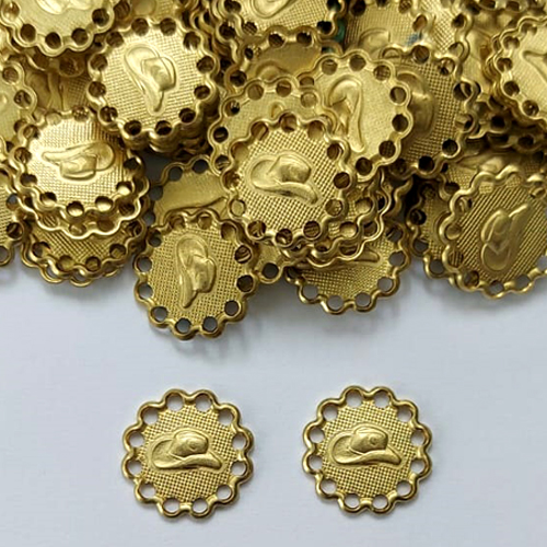 ACESSÓRIO NO BRUTO PRONTO PARA O BANHO - (3.1999) MEDALHA CHAPÉU COWBOY 12MM - PESO 0,3GR - COMPOSIÇÃO: 100% LATÃO (PEÇA VENDIDA POR UNIDADE) - BRU0003203