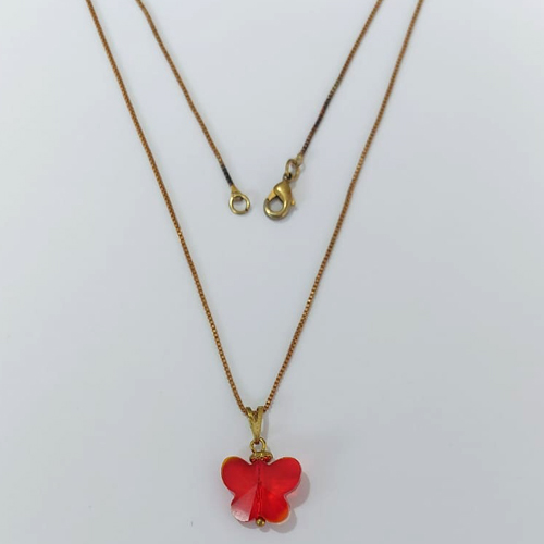 GARGANTILHA NO BRUTO PRONTA PARA O BANHO - GARGANTILHA COM CORRENTE VENEZIANA 45CM - PINGENTE BORBOLETA VIDRO VERMELHA 15MM - PESO TOTAL 3,3GR - COMPOSIÇÃO: LATÃO / VIDRO - BRU24302
