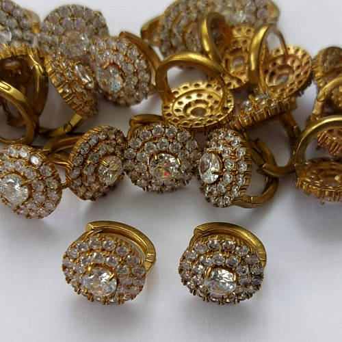 BRINCO NO BRUTO PRONTO PARA O BANHO - BRINCO ARGOLINHA DE PRESSÃO REDONDO CRAVEJADO EM MICROS ZIRCÔNIAS 13MM - PESO: 4GR - COMPOSIÇÃO: LATÃO / ZIRCÔNIA - BRU15641