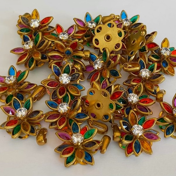 PINGENTE NO BRUTO PRONTO PARA O BANHO -ACESSÓRIO - VENDIDA POR UNIDADE FOR COM PÉTALAS DE VIDRO COM UMA PEDRA DE ZIRCÔNIA NO CENTRO - PESO TOTAL 1,4GR - TAMANHO 15MM BRU000700
