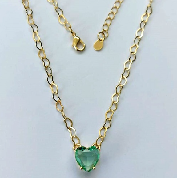 SHOCKER FOLHEADO A OURO 5 MILÉSIMOS + VERNIZ DIAMOND - CORRENTE DE CORAÇÃO 40CM + EXTENSOR E FECHO LAGOSTA - PINGENTE ZIRCÔNIA FORMATO CORAÇÃO 10MM - OURO895