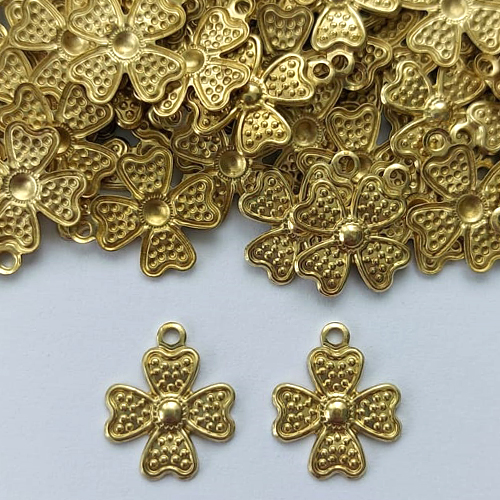 ACESSÓRIO NO BRUTO PRONTO PARA O BANHO - (V4005) TREVO 12MM COM UM FURO - PESO 0,5GR - COMPOSIÇÃO: 100% LATÃO (PEÇA VENDIDA POR UNIDADE) - BRU0003155