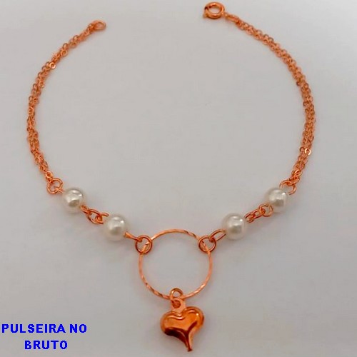 PULSEIRA NO BRUTO PRONTO PARA O BANHO(CX156) PULSEIRA COM PEROLA E CORAÇAO) PESO 2.1GR (TAMANHO 18CM) BRU24558