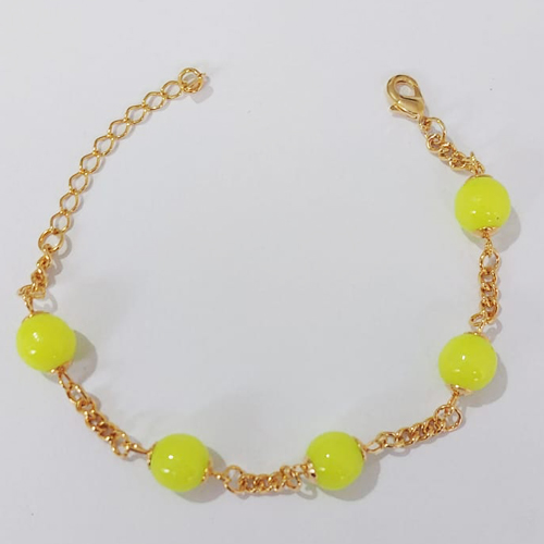 PULSEIRA FOLHEADO A OURO - BANHADO COM 5 MILÉSIMOS + VERNIZ DIAMOND - PULSEIRA 17CM COM BOLAS AMARELAS - OURO1113