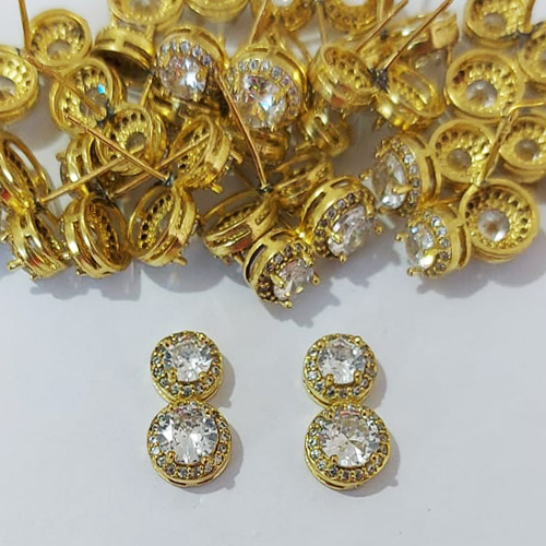 BRINCO NO BRUTO PRONTO PARA O BANHO - BRINCO DE PINO REDONDO CRAVEJADO COM MICROS ZIRCÔNIAS - TAMANHO 15MM - COMPOSIÇÃO: LATÃO / ZIRCÔNIA - PESO 2,6GR - BRU24085