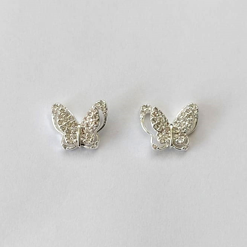 BRINCO FOLHEADO A PRATA COM 50 MILÉSIMOS + VERNIZ DIAMOND - BRINCO DE PINO BORBOLETA COM ZIRCÔNIAS 9MM - PRA620