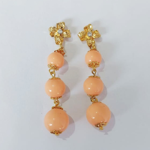 BRINCO FOLHEADO A OURO COM VERNIZ DIAMOND - BRINCO DE PINO BASE FLOR COM ZIRCÔNIA E PÉROLAS SALMÃO 65MM - OURO1137