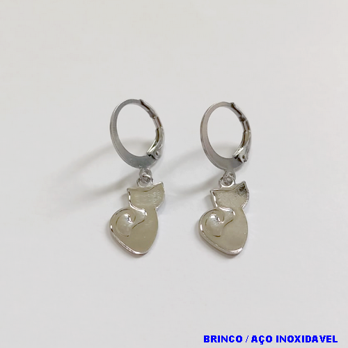 BRINCO EM AÇO INOXIDAVEL COM *(ARGOLINHA DE PRESSÃO)* )CX151)( TAMANHO DO PINGENTE GATINHO 1MM- AÇO0294