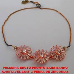 PULSEIRA BRUTO PRONTO BARA BANHO AJUSTAVEL COM 3 PEDRA DE ZIRCONIAS PESO TOTAL 5,9GR - BRU084A