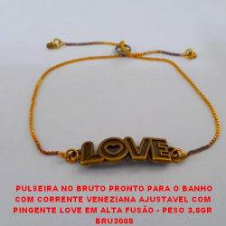 PULSEIRA NO BRUTO PRONTO PARA O BANHO COM CORRENTE VENEZIANA AJUSTAVEL COM PINGENTE LOVE EM ALTA FUSÃO - PESO 3,8GR BRU3008