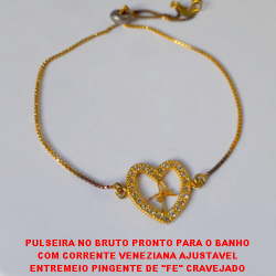 PULSEIRA NO BRUTO PRONTO PARA O BANHO COM CORRENTE VENEZIANA AJUSTAVEL ENTREMEIO PINGENTE DE ''FE'' CRAVEJADO -PESO 4,2GR - BRU3127