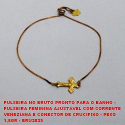 PULSEIRA NO BRUTO PRONTO PARA O BANHO - PULSEIRA FEMININA AJUSTÁVEL COM CORRENTE VENEZIANA E CONECTOR DE CRUCIFIXO - PESO 1,5GR - BRU2839