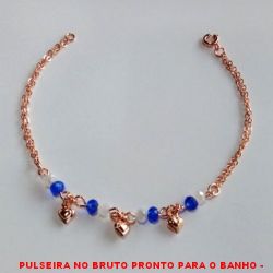 PULSEIRA NO BRUTO PRONTO PARA O BANHO - PULSEIRA FEMININA COM MIÃANGAS SEXTAVADOS E PENDURICALHOS DE CORAÃÃES - TAMANHO:197CM - PESO:24GR - BRU0776