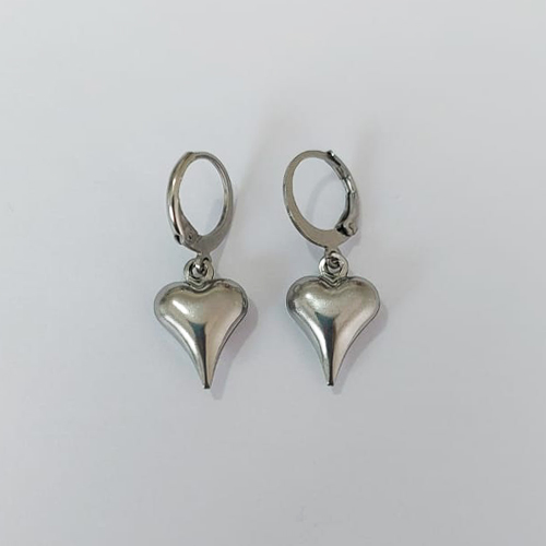 BRINCO EM AÇO INOXIDÁVEL - BRINCO ARGOLINHA DE PRESSÃO COM PINGENTE CORAÇÃO DUPLO 11MM - COMPOSIÇÃO: AÇO INOXIDÁVEL - AÇO2330