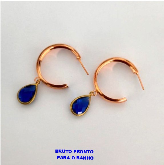 BRINCO NO BRUTO PRONTO PARA O BANHO(CX163)- BRINCO DE ARGOLA DE 2,5CM COM PINGENTE DE VIDRO 10X14MM DE VIDRO / - PESO TOTAL 4.7GR - BRU24823