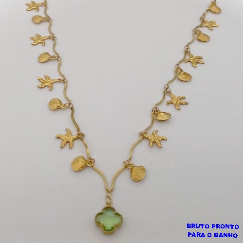 SHOCKER NO BRUTO PRONTO PARA O BANHO SHOCKER COM CONCHAS E ESTRELA DO MAR E UM TREVO DE VIDRO 10MM (TAMANHO 40CM+EXTENSOR) PESO 7.9GR BRU24949
