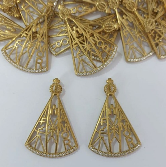 PINGENTE NO BRUTO PRONTO PARA O BANHO EM ALTA FUSÃO (CX148) (PESO 3.3GR - TODO CRAVEJADO EM MICRO ZIRCONIAS - BRU23924