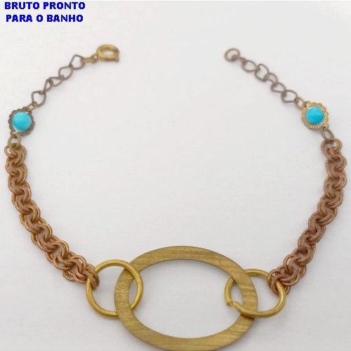 PULSEIRA NO BRUTO PRONTO PARA O BANHO(CX161)- PULSEIRA COM PEDRAS DE RESINAE CORRENTE DUPLA/ TAMANHO 18CM / - PESO TOTAL 4.2GR - BRU24762