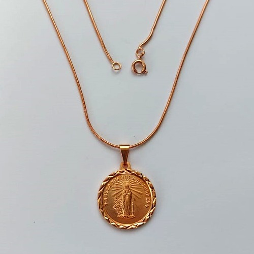 GARGANTILHA NO BRUTO PRONTO PARA O BANHO(CX63) - GARGANTILHA COM CORRENTE RABO DE RATO 45CM - PINGENTE NOSSA SENHORA DE LOURDES 22MM - PESO TOTAL 8,8GR - BRU15548
