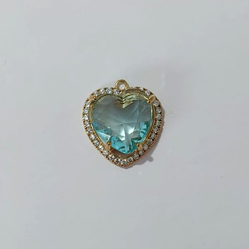 PINGENTE NO BRUTO PRONTO PARA O BANHO - PINGENTE COM BASE CORAÇÃO CRAVEJADO EM MICRO ZIRCÔNIAS CRISTAIS E PEDRA EM ZIRCÔNIA AZUL 15X15MM - PESO TOTAL 4,2GR - COMPOSIÇÃO: LATÃO / ZIRCÔNIA - BRU24220
