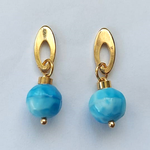 BRINCO FOLHEADO A OURO - BANHADO COM 5 MILÉSIMOS + VERNIZ DIAMOND - BRINCO DE PINO COM BASE OVAL E PINGENTE PORCELANA MESCLADA 10MM - OURO503