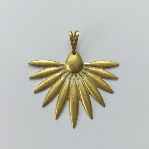 PINGENTE NO BRUTO PRONTO PARA O BANHO - (V3662) PINGENTE LEQUE 38MM - PESO: 1,2GR - COMPOSIÇÃO: 100% LATÃO - BRU15609