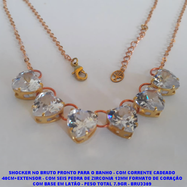 40CM+EXTENSOR - COM SEIS PEDRA DE ZIRCONIA 10MM FORMATO DE CORAÇÃO
