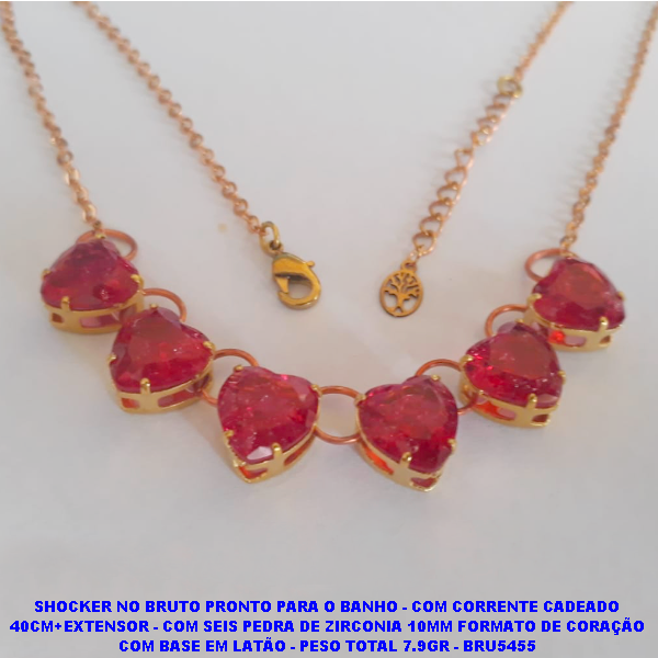 40CM+EXTENSOR - COM SEIS PEDRA DE ZIRCONIA 10MM FORMATO DE CORAÇÃO