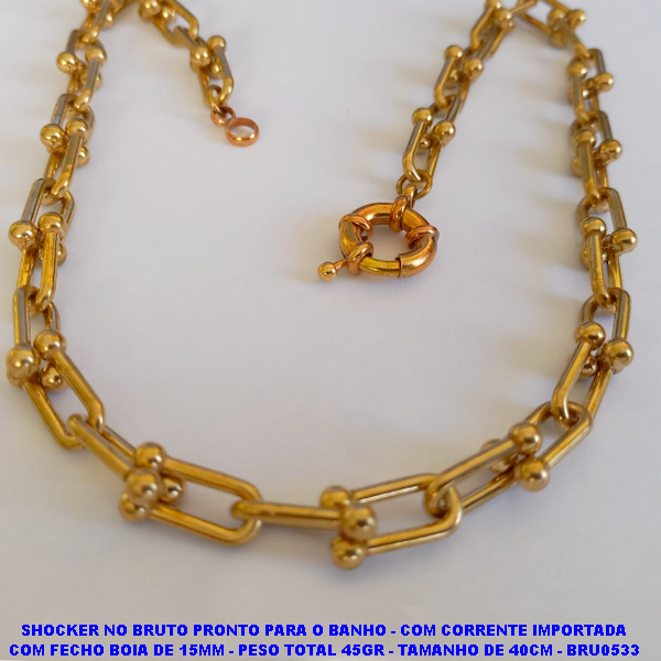 SHOCKER NO BRUTO PRONTO PARA O BANHO - COM CORRENTE IMPORTADA COM FECHO BOIA DE 15MM - PESO TOTAL 45GR - TAMANHO DE 40CM - BRU0533
