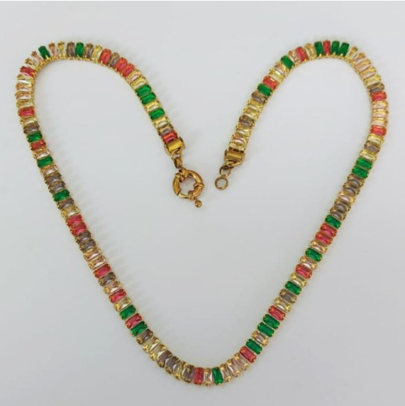 SHOCKER NO BRUTO PRONTO PARA O BANHO/TAMANHO 42CM LARGURA 5MM TODA EM ZIRCONIA COLORIDA- COM FECHO BOIA / PESO 15,5GR -BRU0003584