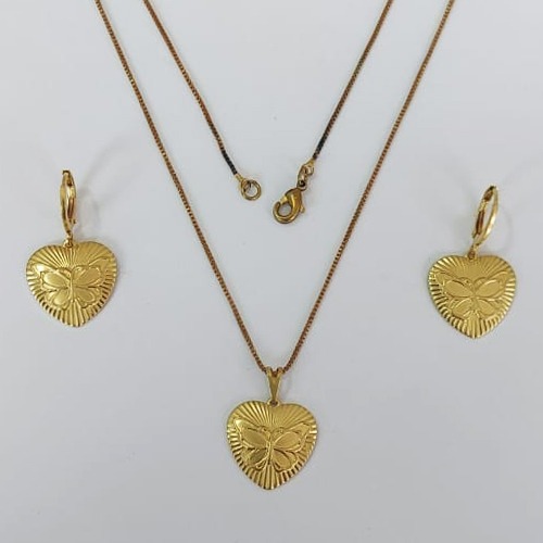 CONJUNTO NO BRUTO PRONTO PARA O BANHO COM CORRENTE VENEZIANA DE 45CM (100% LATÃO )(4998) - PINGENTES CORAÇÃO DIAMANTADO BORBOLETA 17MM- PESO: 7,1GR - BRU0003709