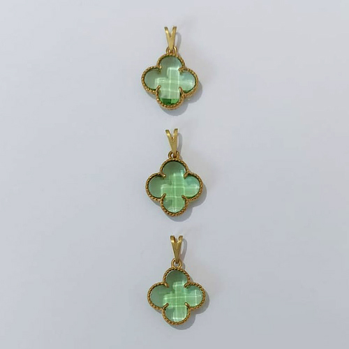 PINGENTE NO BRUTO PRONTO PARA O BANHO - KIT COM 3 PINGENTES TIPO VAN CLEEF VIDRO VERDE CLARA 15MM - PESO TOTAL 4,6GR - BRU24327