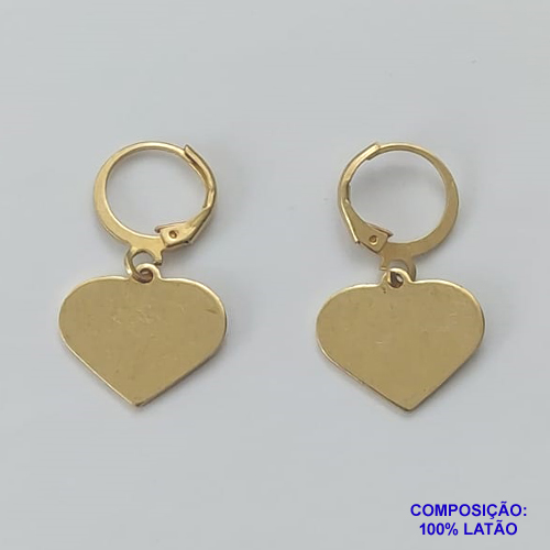 BRINCO NO BRUTO PRONTO PARA O BANHO - BRINCO CORAÇÃO 14MM COM ARGOLA DE PRESSÃO - COMPOSIÇÃO: 100% LATÃO - PESO TOTAL: 2,8GR - BRU9191