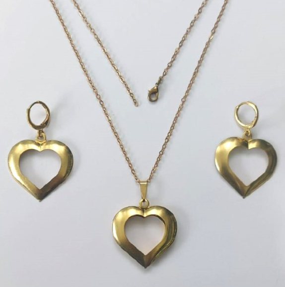 CONJUNTO NO BRUTO PRONTO PARA O BANHO(303)PESO TOTAL 7.6GR - COM CORRENTE CADEADO E BRINCO COM BASE ARGOLINHA DE PRESSÃO BRU000335