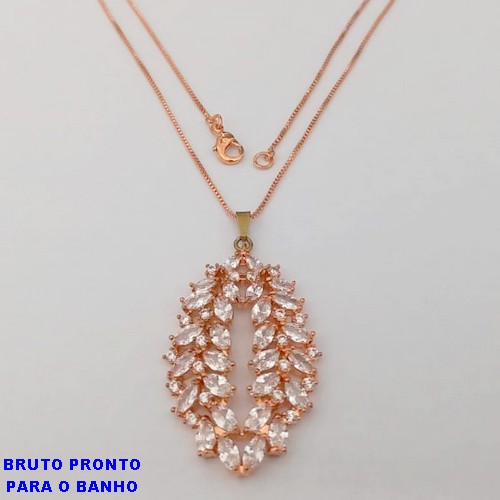 GARGANTILHA NO BRUTO PRONTO PARA O BANHO(CX160)- GARGANTILHA COM CORRENTE VENEZIANA DE 45CM E PINGENTE DE 4X2,25CM TODO CRAVEJADO)- PESO TOTAL 8.9GR - BRU24728