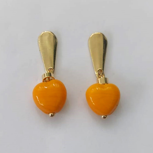 BRINCO FOLHEADO A OURO - BANHADO COM 5 MILÉSIMOS + VERNIZ DIAMOND - BRINCO DE PINO BASE GOTA E PINGENTE EM MURANO CORAÇÃO 10MM - OURO586