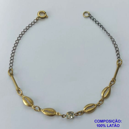 PULSEIRA NO BRUTO PRONTO PARA O BANHO - PULSEIRA COM BUZIOS E STRASS CRISTAL 18CM - COMPOSIÇÃO 100% LATÃO - PESO: 2,2GR - BRU14062