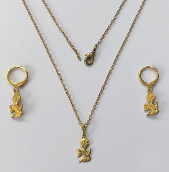 CONJUNTO NO BRUTO PRONTO PARA O BANHO(E0478)PESO TOTAL 1.7GR - COM CORRENTE CADEADO E BRINCO COM BASE ARGOLINHA DE PRESSÃO BRU3341