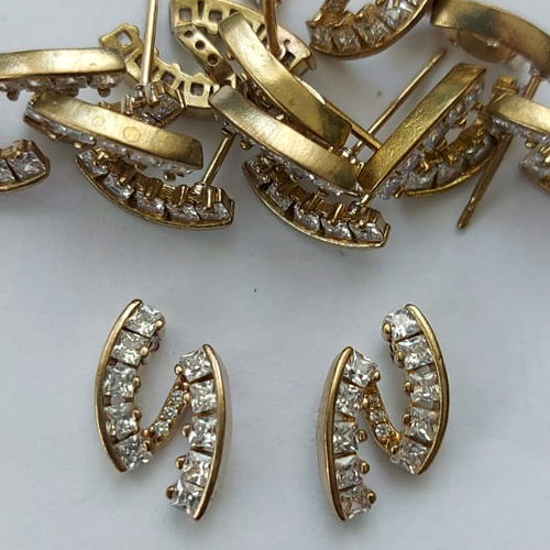 BRINCO NO BRUTO PRONTO PARA O BANHO - BRINCO DE PINO CRAVEJADO EM MICROS ZIRCÔNIAS 14MM - PESO: 1,7GR - COMPOSIÇÃO: LATÃO / ZIRCÔNIA - BRU15907