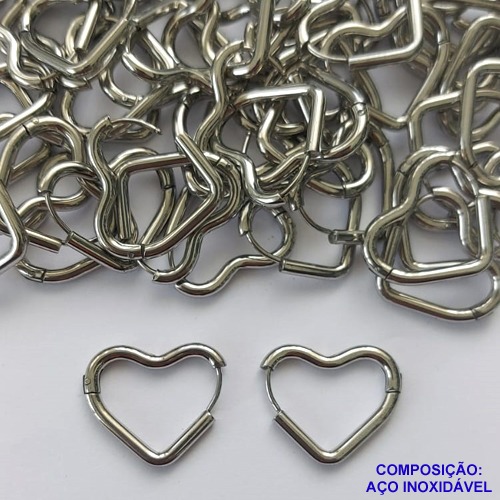 BRINCO EM AÇO INOXIDÁVEL - BRINCO DE ARGOLA COM TRAVA FORMATO CORAÇÃO 25MM - COMPOSIÇÃO: AÇO INOXIDÁVEL - AÇO1775