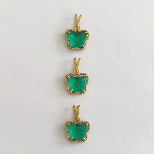 PINGENTE NO BRUTO PRONTO PARA O BANHO - KIT COM 3 PINGENTES BORBOLETA TIPO VAN CLEEF EM VIDRO VERDE 10MM - PESO TOTAL 2,6GR - BRU24267