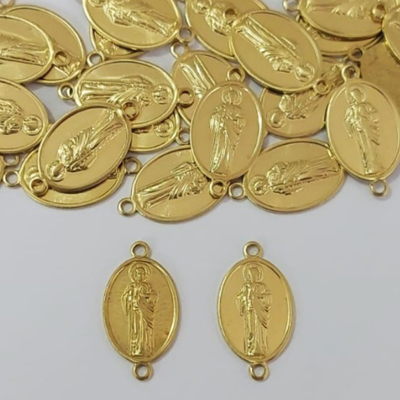 ACESSORIO NO BRUTO PRONTO PARA O BANHO(CX149)(5938) VENDIDO POR UNIDADE/ Oval 12,8mm São Judas Tadeu C/ 2 Cabeça / PESO 0,7GR - BRU3904