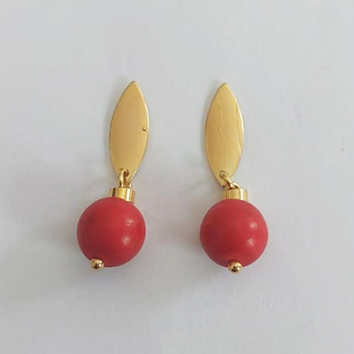 BRINCO FOLHEADO A OURO - BANHADO COM 5 MILÉSIMOS + VERNIZ DIAMOND - BRINCO PINO BASE DESENHADA PINGENTE PEDRA NATURAL - OURO1034