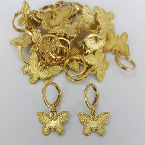 BRINCO NO BRUTO PRONTO PARA O BANHO - BRINCO ARGOLINHA DE PRESSÃO (TRANQUETA)(33331A1) - COM PINGENTE BORBOLETA DESENHADA 13MM - PESO TOTAL 2,4GR - COMPOSIÇÃO: 100% LATÃO - BRU0003664