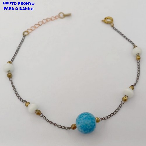 PULSEIRA NO BRUTO PRONTO PARA O BANHO(CX167 PULSEIRA SIMPLES COM CONTAS EM PORCELANA E BOLA DE RESINA (TAMANHO 18CM)PESO 2.2GR - BRU24964